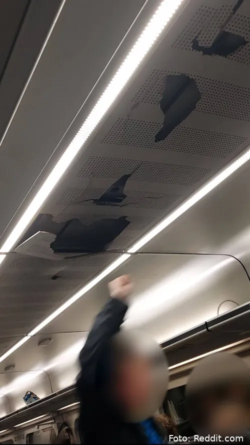 En togkupé mellem Randers og Aarhus blev beskadiget – og DSB bekræfter nu, at der blev smadret et loft i toget. Episoden er blevet omtalt på Reddit og efterfølgende bekræftet af både DSB og Tipsbladet.