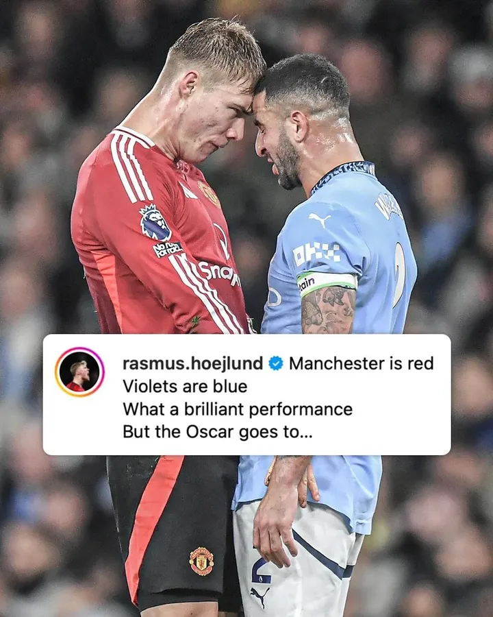 Efter kampen tog Rasmus Højlund til Instagram for at fejre sejren og samtidig sende en ironisk hilsen til Kyle Walker.