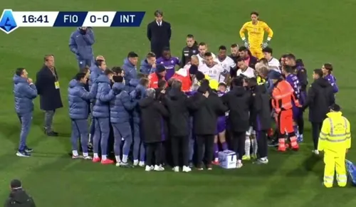 Kampen blev pludseligt stoppet, da den 22-årige Fiorentina-spiller faldt om efter blot 16 minutters spil.