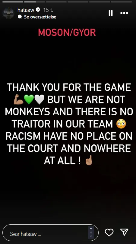 Efter slutfløjt tog Győris keeper Hatadou Sacko ordet på sin Instagram. Hun lagde et billede op med teksten: