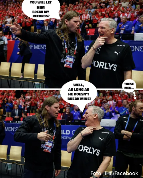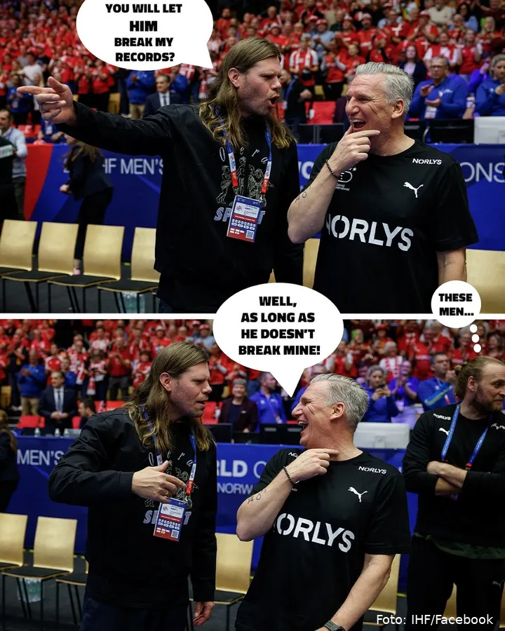 Det Internationale Håndboldforbund har lavet et meme, der gengiver en let "bagtalende" samtale mellem Mikkel Hansen, landstræner Nikolaj Jacobsen og Henrik Møllgaard, hvor de med et glimt i øjet diskuterer Gidsels imponerende præstationer og den trussel, han udgør mod deres egne historiske rekorder.