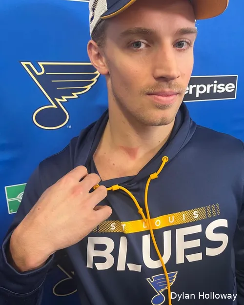 Spillet blev til sidst genoptaget, da Holloway blev kørt til hospitalet og bemærkelsesværdigt nok håber den unge spiller at kunne deltage i Blues' kamp mod Utah Hockey Club i weekenden.