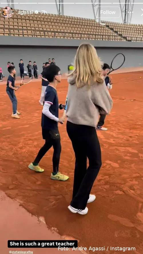 På Instagram delte Agassi et øjeblik fra deres tid på tennisbanerne i Shanghai, hvor Steffi Graf gav gode råd til unge spillere.