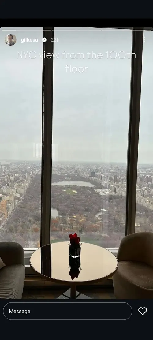 På sin Instagram Story delte Alexander Gilkes to billeder, hvor han fremviste den spektakulære udsigt over New York fra toppen af en af byens mange skyskrabere.