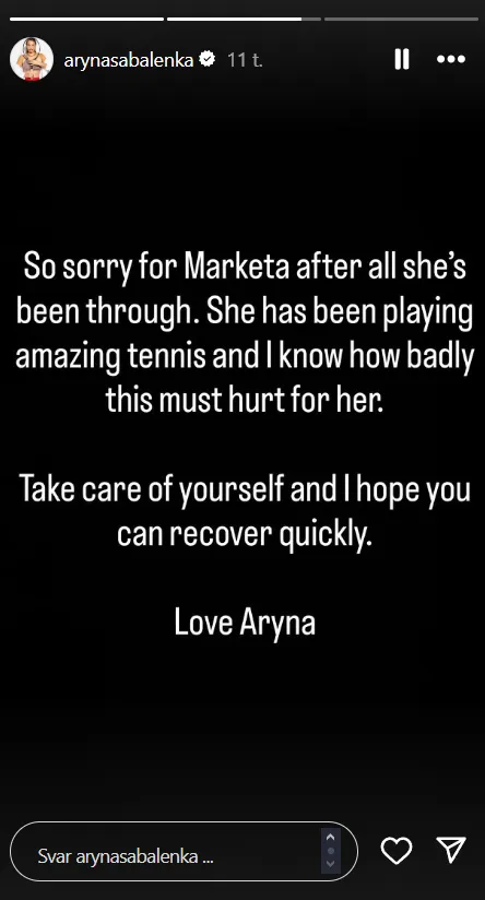 - Jeg føler med Marketa efter alt det, hun har været igennem. Nu har hun spillet fantastisk tennis igen, og jeg ved, at det er smertefuldt at måtte trække sig. Pas på dig selv, og jeg håber, du kommer dig hurtigt.